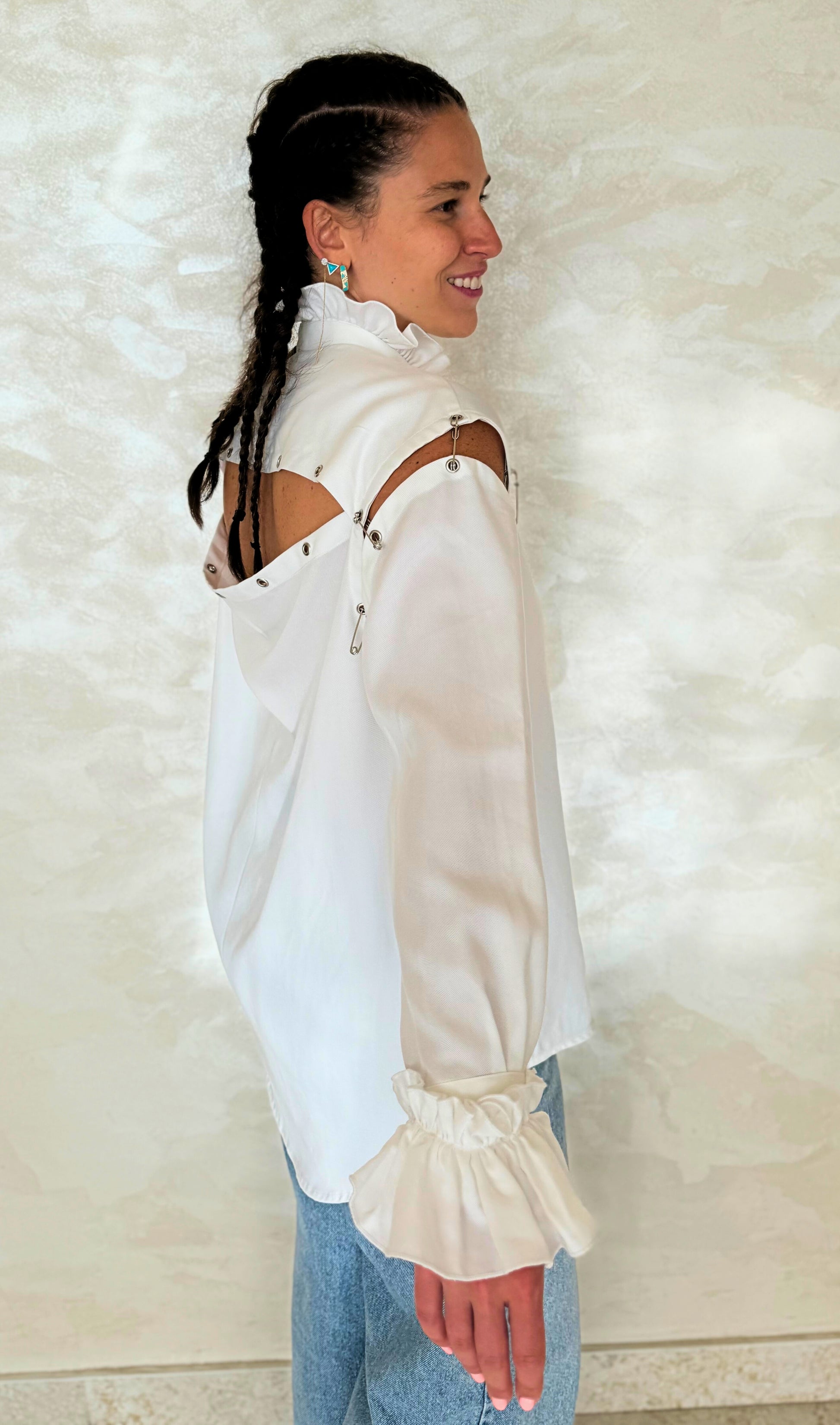 Designed with multifunctionality in mind, the Ishtar Top can be styled in countless ways, making it a wardrobe essential that seamlessly transitions from day to night. Pair it with tailored trousers for a polished office look, or wear it casually with denim for weekend brunches. Its adaptable design allows you to experiment and express your personal style in new, creative ways.