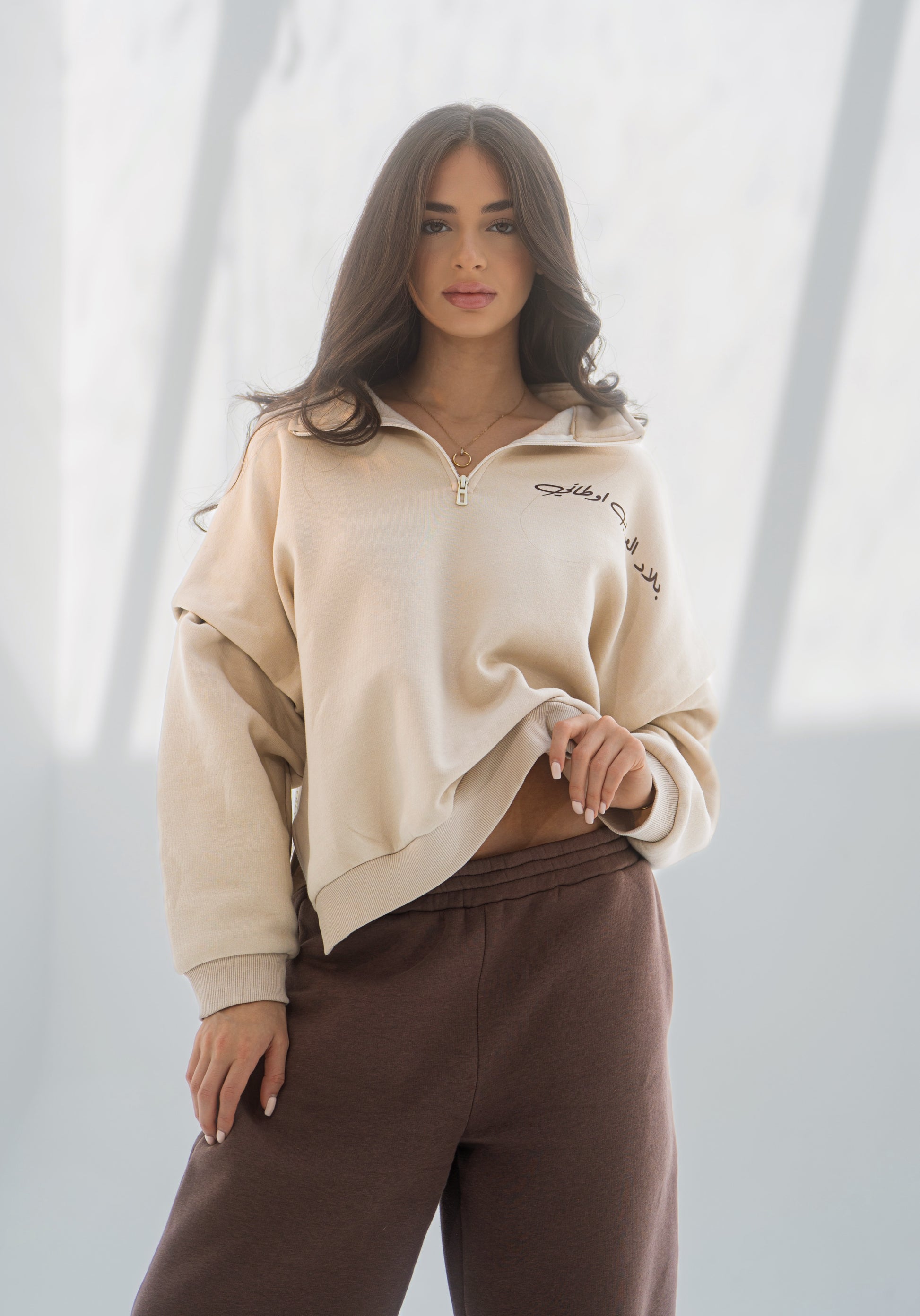 Versatile, bold, and made to tell a story. This oversized sweater transforms with you—wear it with sleeves for a classic look or remove them for a sleeveless statement. The artwork flows seamlessly, continuing the narrative of unity, with بلاد العرب أوطاني as a powerful reminder that borders may exist, but our connection is limitless.